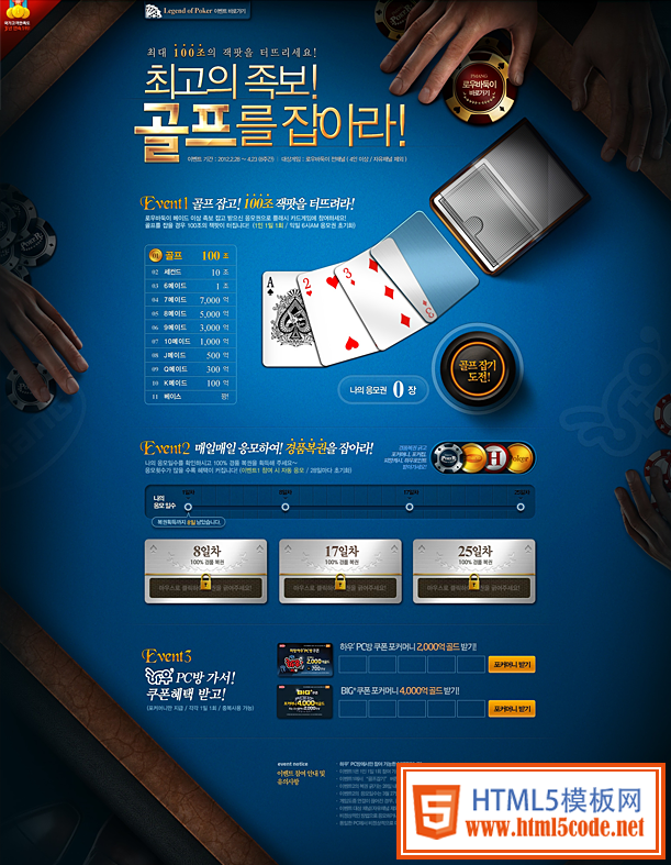 图二:棋牌类页面设计,在较少的内容信息情况下,通常将第一屏作为首要信息显示区域。页面设计除了营造强烈的氛围以之外,设计师对页面细节设计有很高的要求,桌面质感处理的比较细腻。在这样的静态页面中,也可以体验到较强的游戏感。