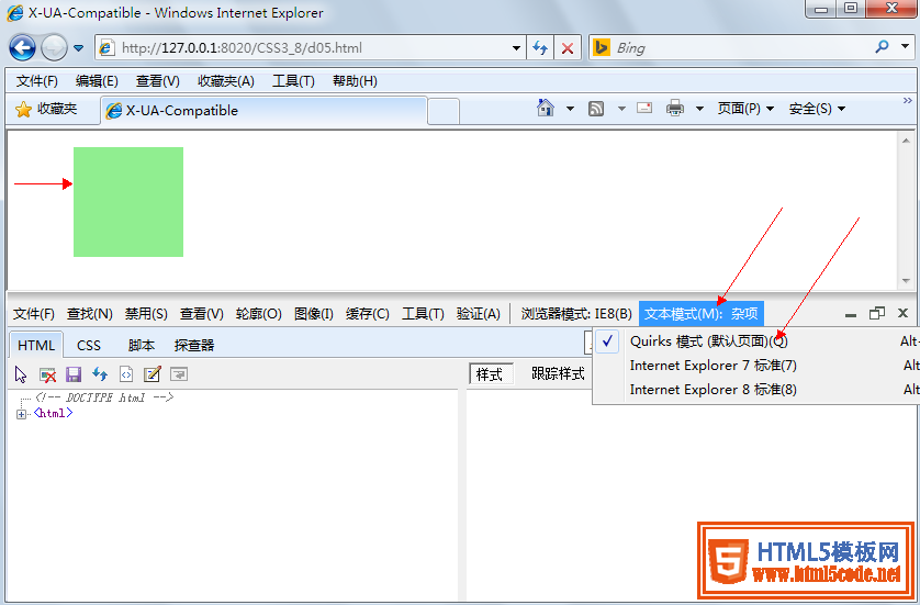 强制指定文档模式为IE6,在IE8下会自动变成怪异模式,简单说IE8被当作IE6在用。
