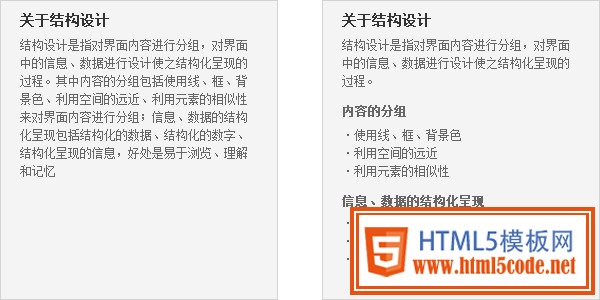 上面讲了结构设计的一个层面,内容的分组,结构设计还有另外一个层面,信息、数据的结构化呈现。